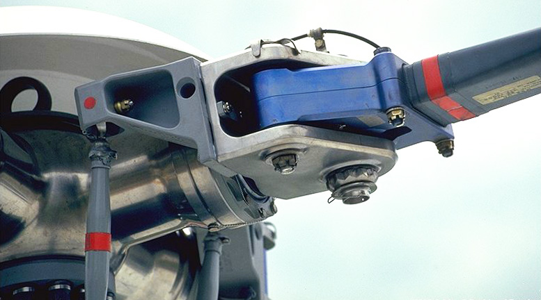 The MBB main rotor hub is a single massive forged piece made of titanium to provide the necessary strength, and the rotor blades are a fiber-reinforced composite to provide strength and flexibility. The blades are flexible enough to handle the flapping and lead-lag loads, yet so durable that they have no fixed-life limit.